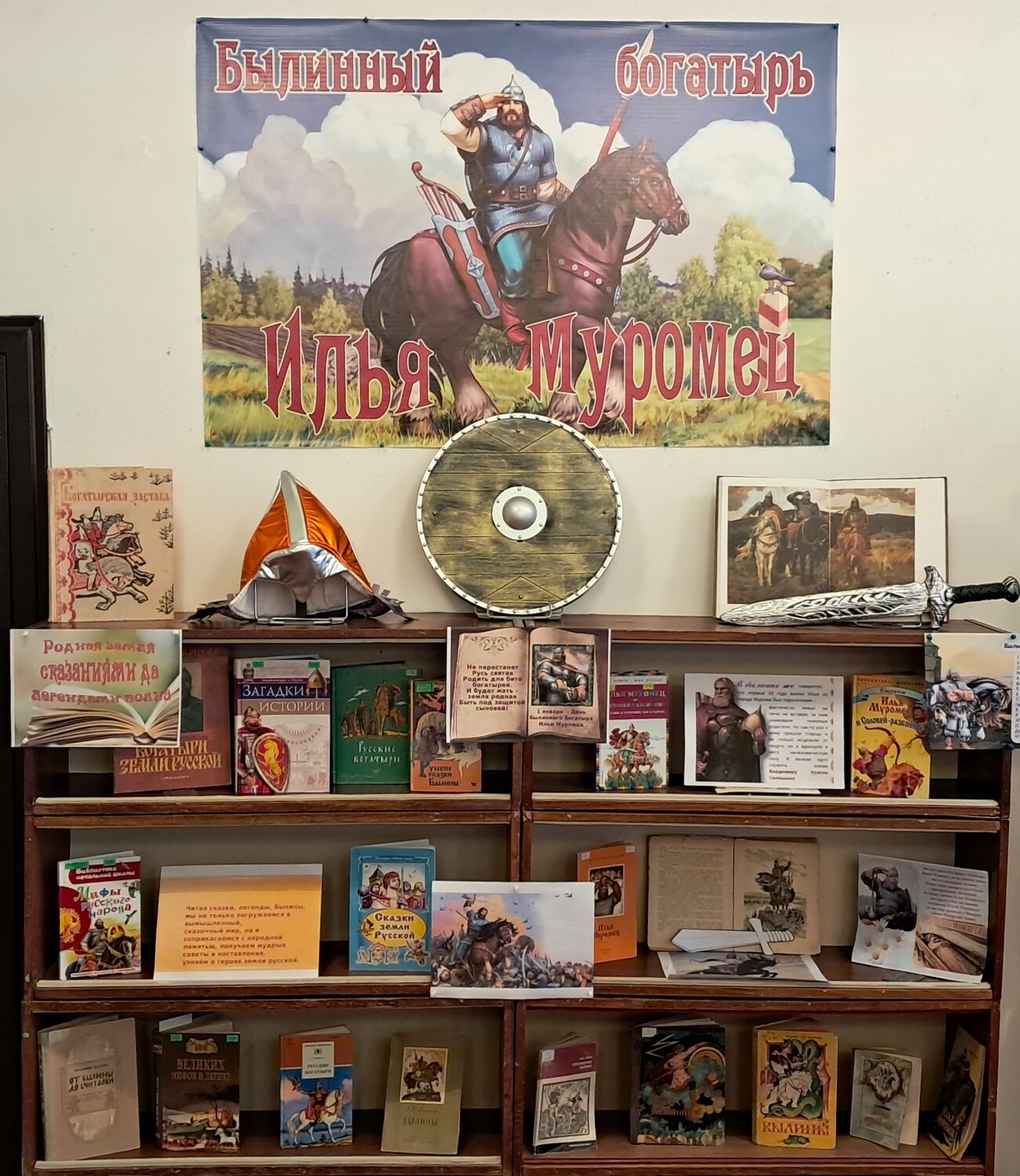В рамках празднования Дня рождения легендарного героя, чья сила и мужество стали предметом восхищения и источником вдохновения для многих поколений, в Детской библиотеке г. Майского организована выставка-иллюстрация «Былинный богатырь - Илья Муромец».