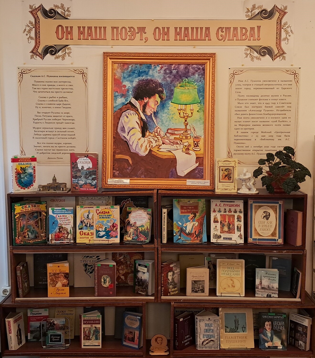 И думайте над каждым словом! Не прочитать его нельзя, А прочитав, вернитесь снова! (Ольга Мегель) Поэзия А.С. Пушкина сопровождает нас всю жизнь, она как бы сливается с повседневностью, становится необходимостью. К его имени слух привыкает с детства. Будучи классиком, Пушкин остаётся для народа не одним лишь достоянием истории, а в полной мере живым явлением. Сложно найти другой подобный случай, чтобы об исторической личности можно было искренне сказать то, что легко говорится о Пушкине – «мой Пушкин». В Детском отделе МКУК «Библиотека им. А.С. Пушкина» организована постоянно действующая выставка-признание «Он наш поэт, он наша слава!». На полках разместились лучшие издания произведений Пушкина, редкие книги и биографические материалы. Каждый читатель может погрузиться в мир великого русского поэта, почувствовать красоту его стихов ... Читать дальше » Прикрепления: